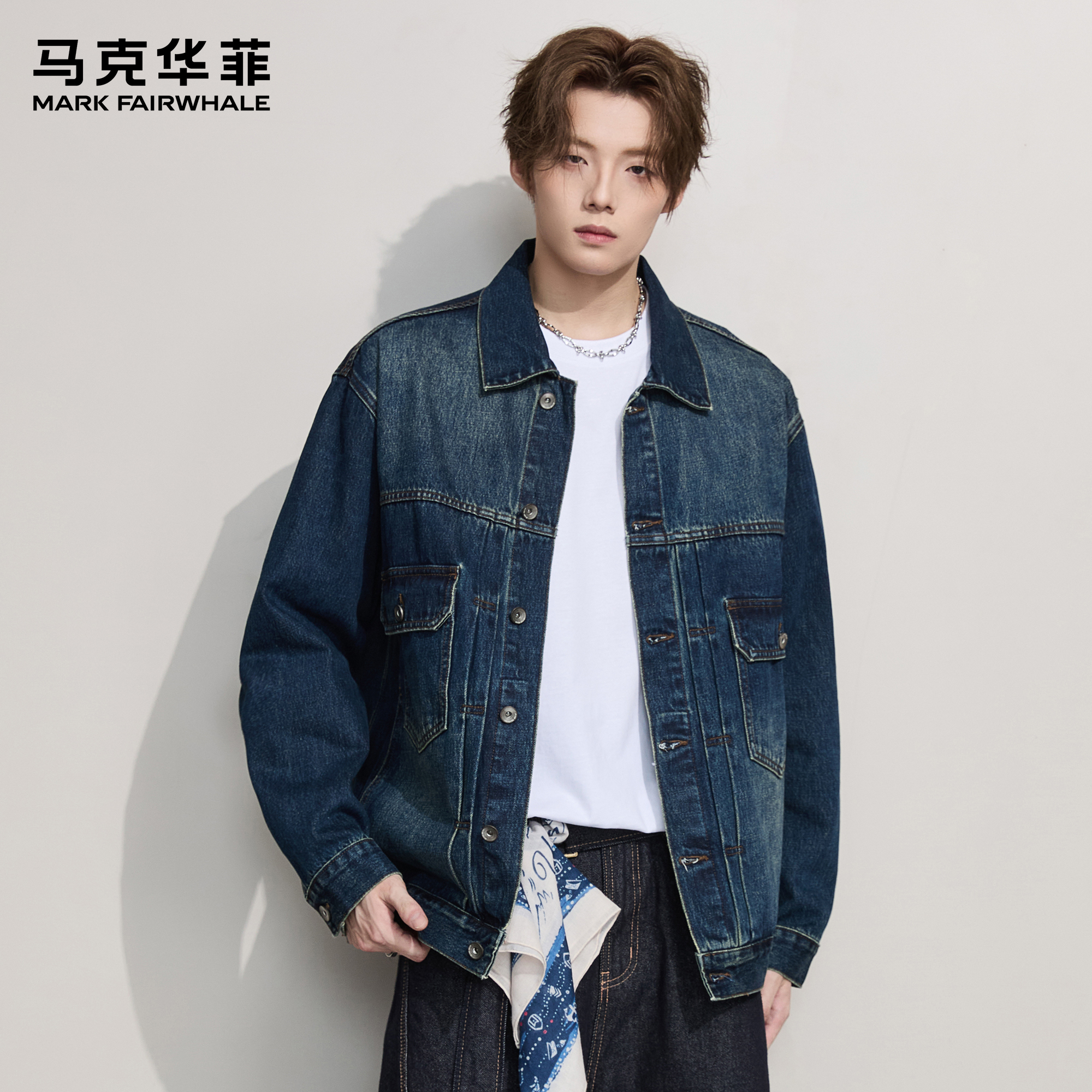 马克华菲牛仔夹克男款 痞帅重磅复古男生蓝色水洗宽松外套 潮牌美式
