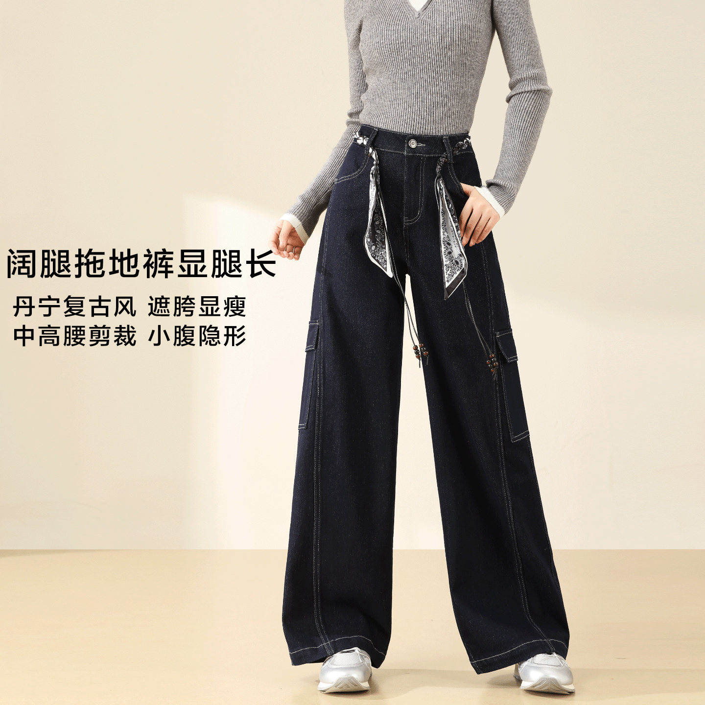 女士垂感显瘦梨型身材烟管裤 女秋冬2025新款 子 直筒牛仔裤 高腰窄版