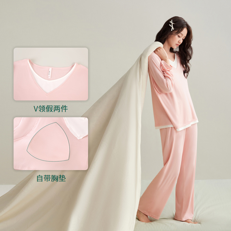 家居服女款 纯棉长袖 夏季 薄款 家乐芬睡衣女士春秋款 空调服套装 秋季