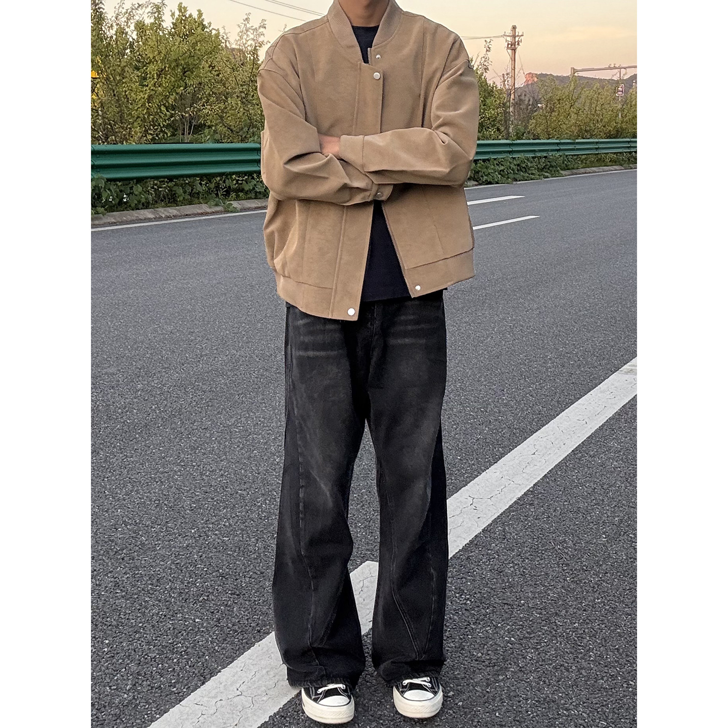 查尔斯桃心美式 复古飞行员外套男廓形老钱bomber立领教练机车夹克