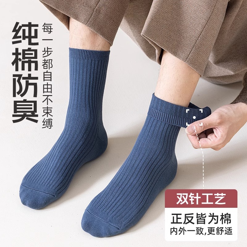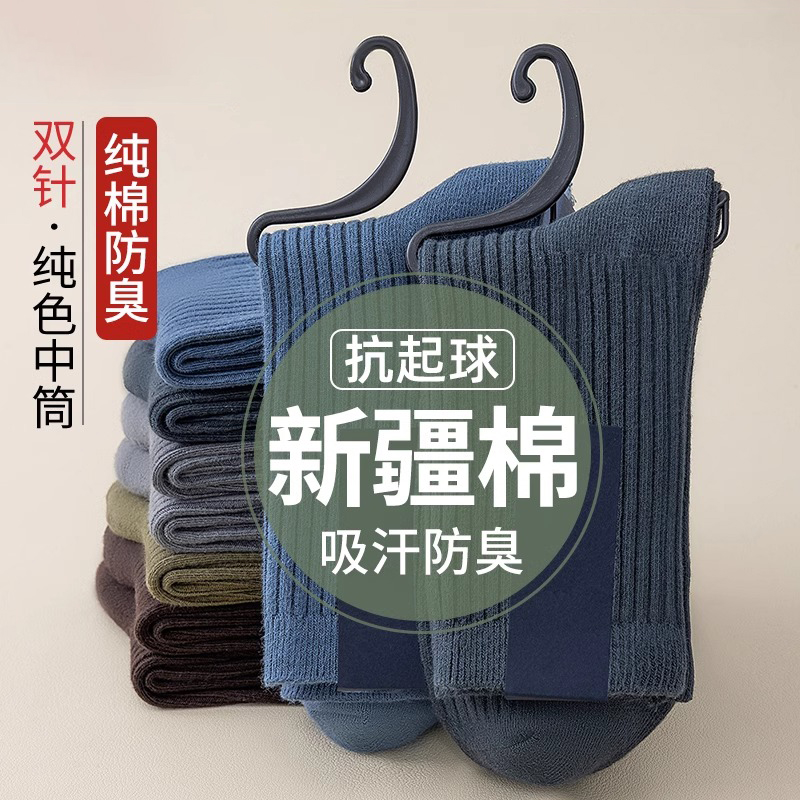 袜子男春秋季 黑色长袜纯棉防臭运动袜新疆棉 吸汗透气中筒袜男士