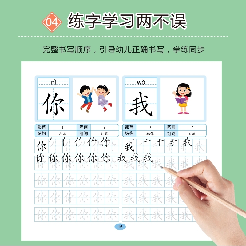 学前600字幼小衔接点阵控笔训练字帖全套4册中小学生一年级笔顺拼音硬笔书法一练儿童识字认字启蒙练习本描红偏旁每日一练笔画汉字