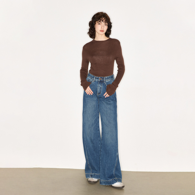 显瘦女 怀旧蓝莱赛尔中高腰不贴腿微喇牛仔裤 王家有鱼 夏日慵懒