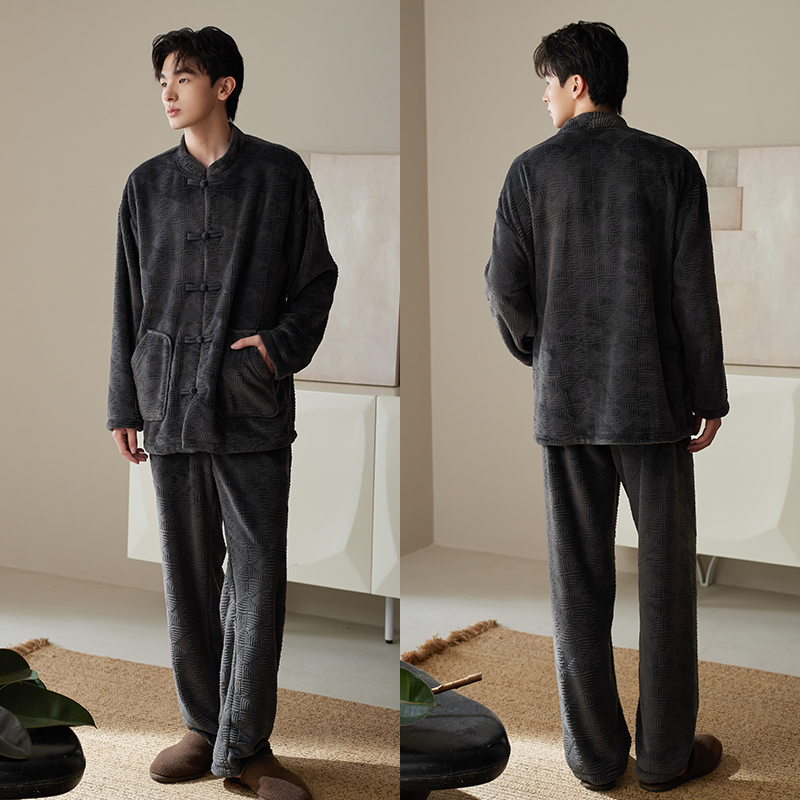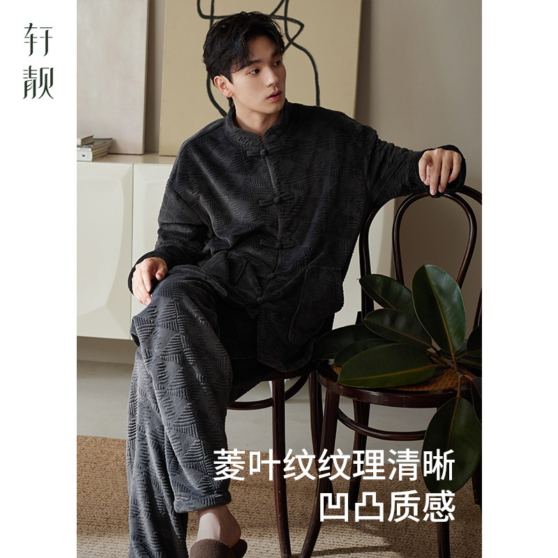 可外穿法兰绒秋冬加厚加绒套装 宽松大码 珊瑚绒家居服睡衣男士 新款