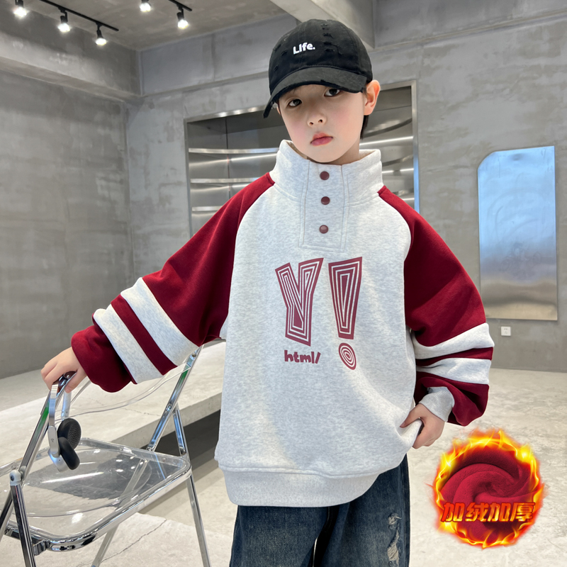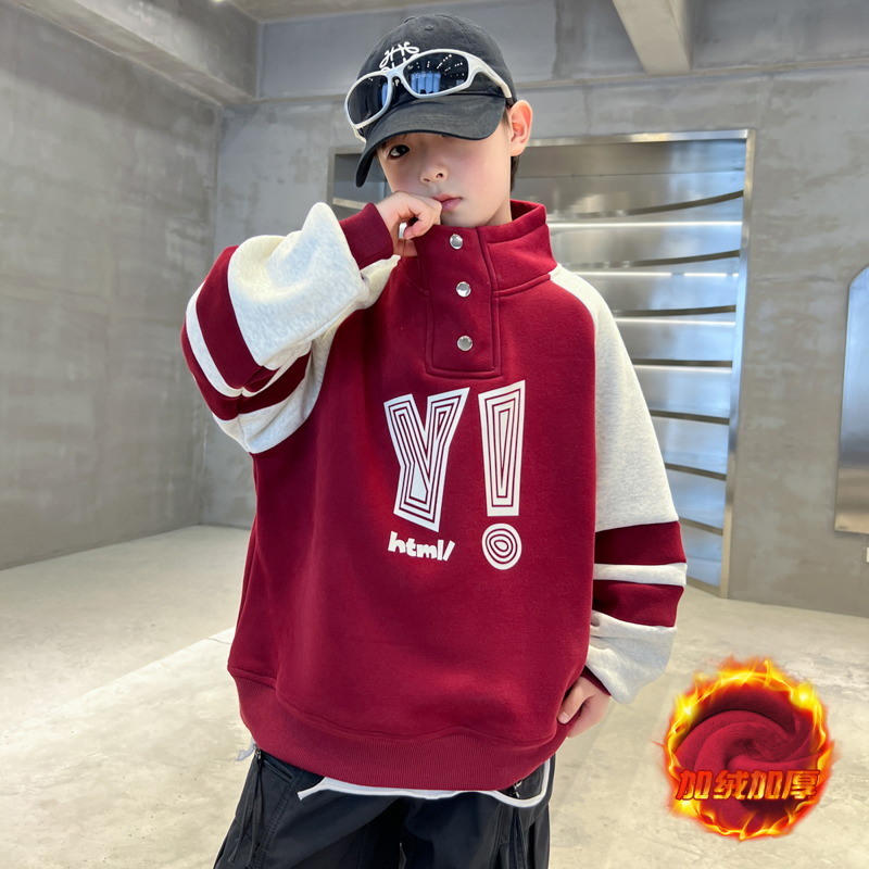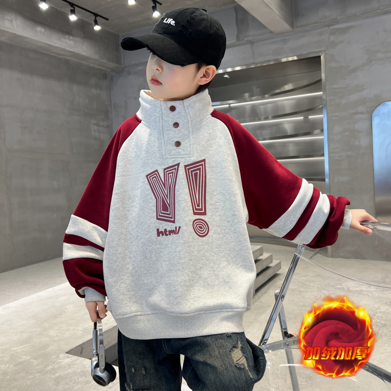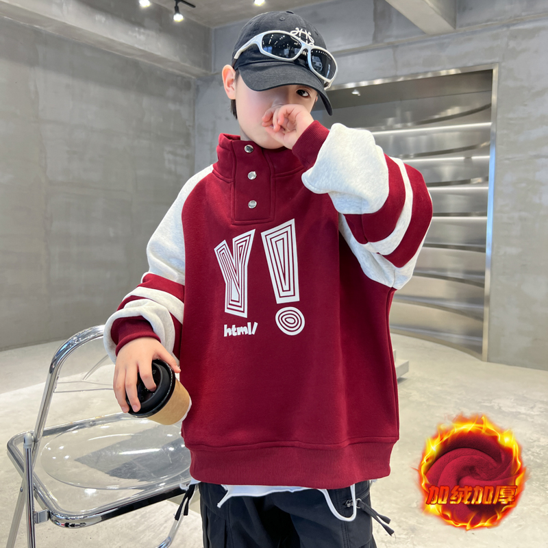 男孩青少年连帽冬季 童装 大童加厚秋冬款 加绒卫衣2025新款 男童冬装