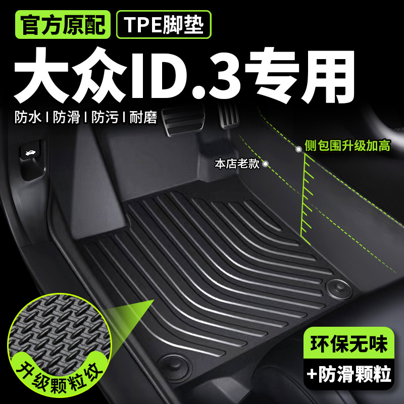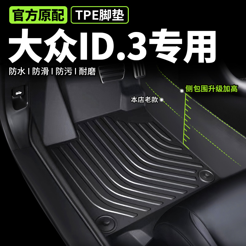 专用大众id3脚垫 tpe全包围汽车脚垫主驾驶丝圈地垫后备箱脚踩垫