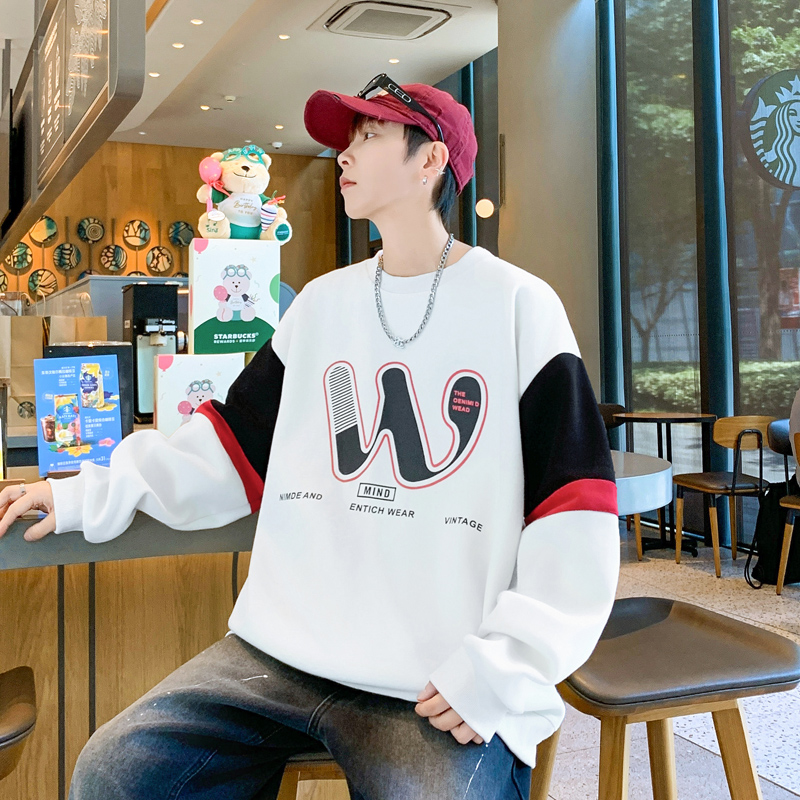 t恤青少年大童秋装 高中初中学生帅气长袖 上衣 新款 圆领卫衣男秋季