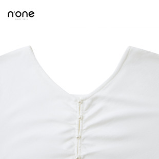 新款 上衣t恤女2025秋季 珍珠单排扣捏褶合体上衣 气质v领长袖 none