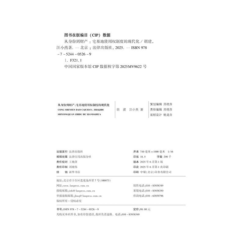 宅基地使用权制度 现代化 胡建 正版 法律出版 从身份到财产 汪小燕 社9787524405269 2025新书