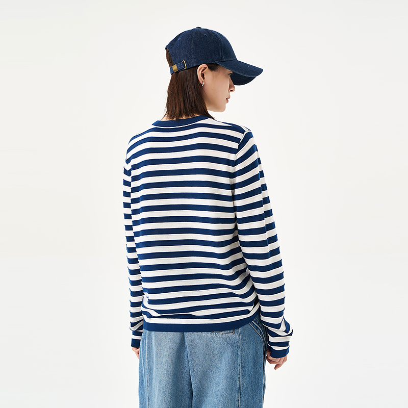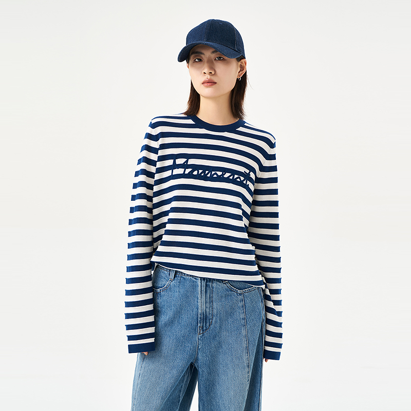 女百搭针织衫 OTT 宽松字母条纹毛织套头衫 2025秋新品 商场同款