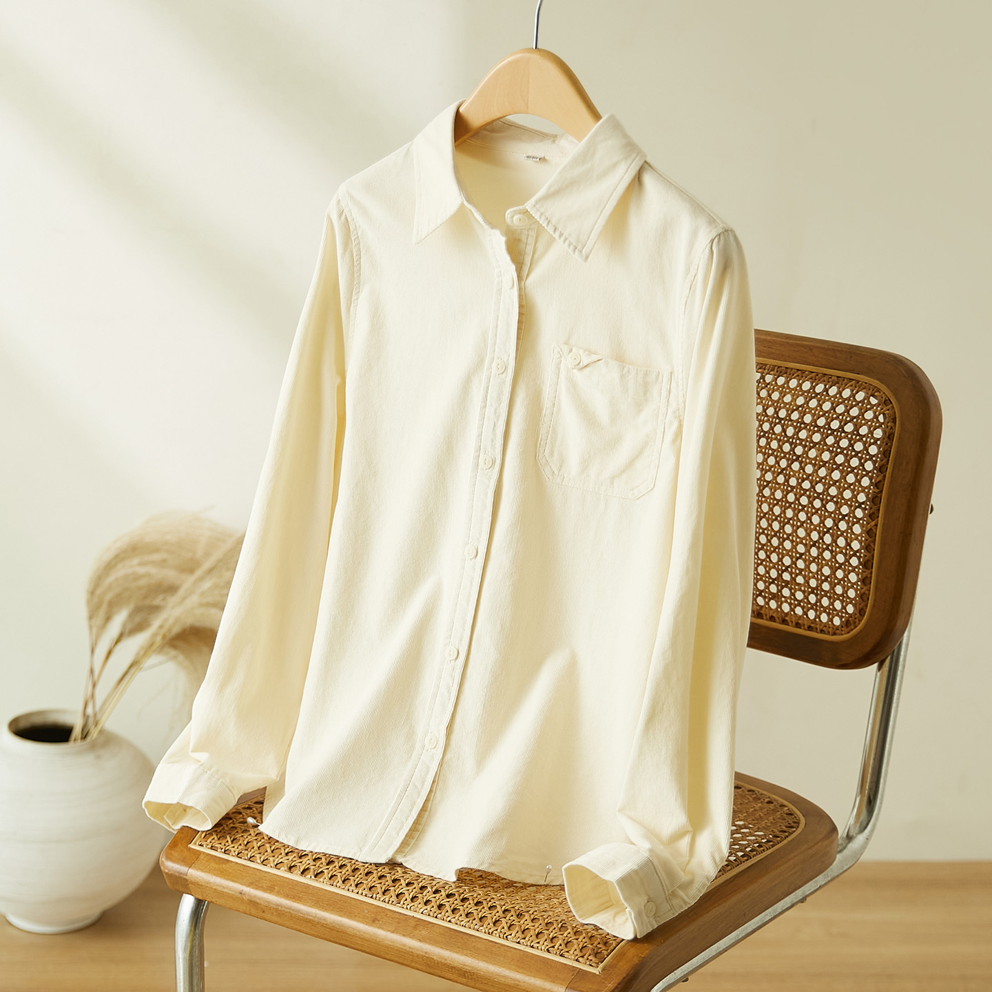 男秋高街cleanfit宽松衬衣青少年上衣 衬衫 V37美式 高级感纯白长袖