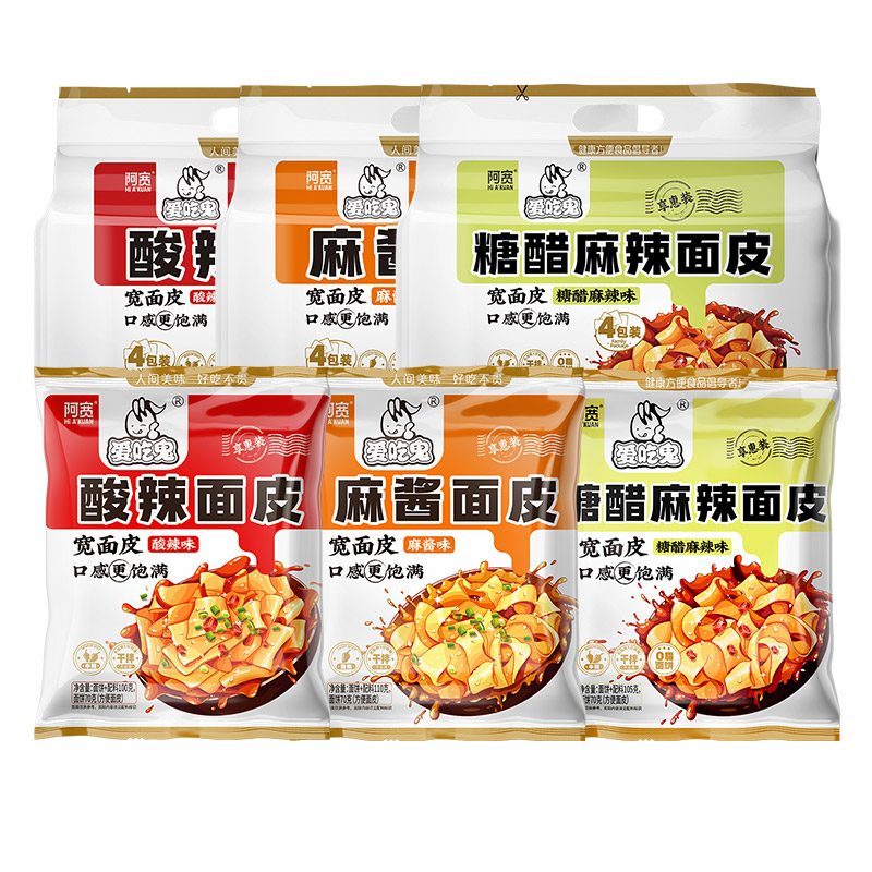 阿宽红油面皮酸辣麻酱面皮干拌面夜宵速食食品方便面泡面整箱批发