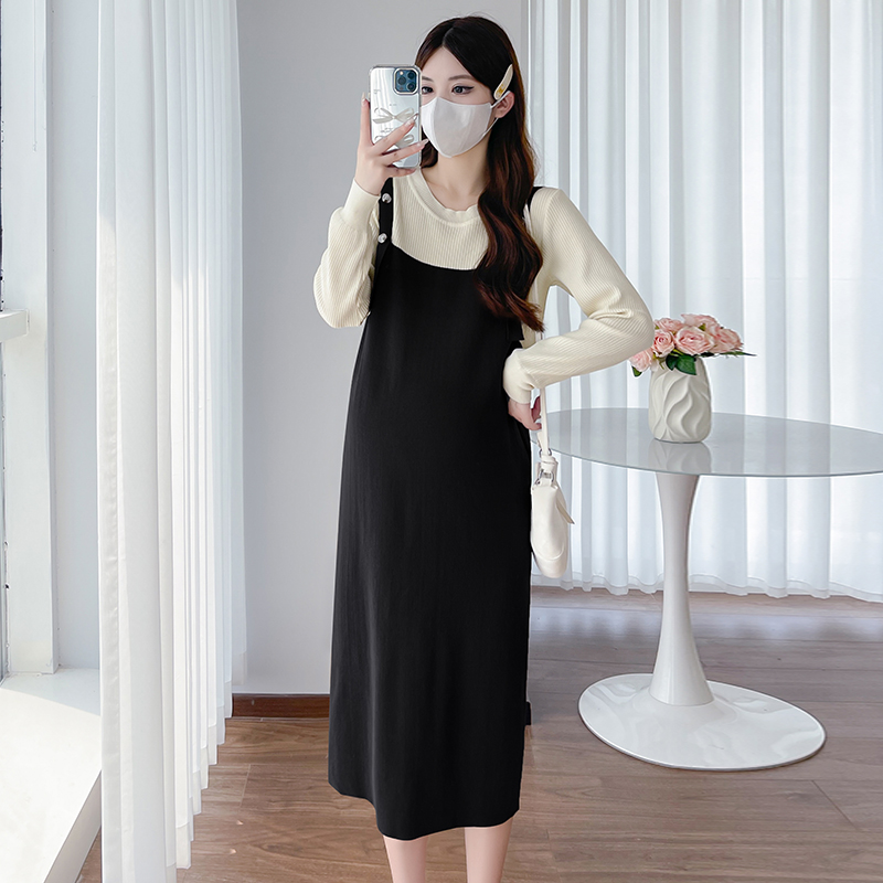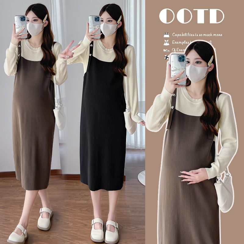 孕期宽松孕妇装 婧麒秋冬孕妇假两件连衣裙子2025新款 青春洋气时尚