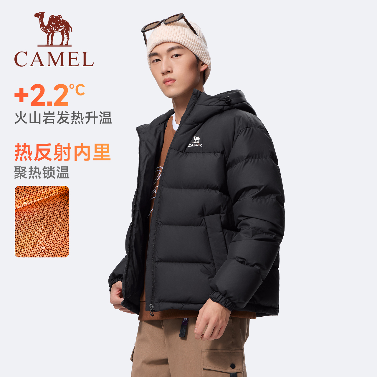 骆驼轻薄羽绒服女冬季 运动排骨羽绒休闲立领保暖鸭绒内胆外套男