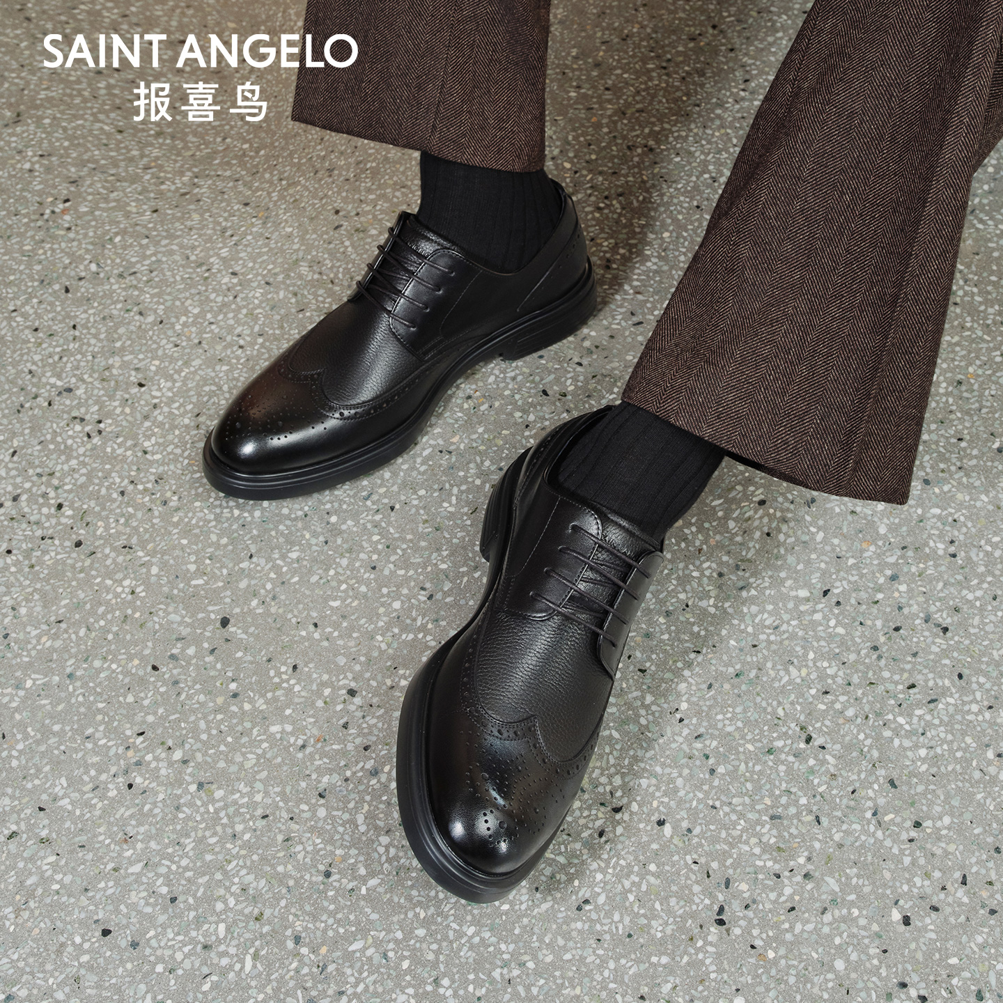 爆米花高弹防滑底商务真皮男鞋 报喜鸟2025新款 皮鞋 布洛克正装 男士