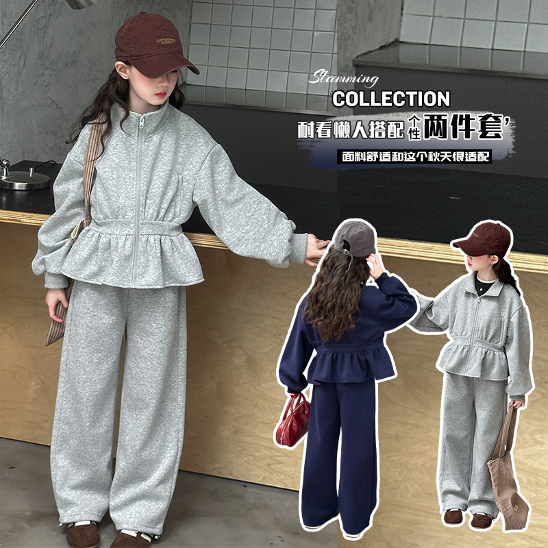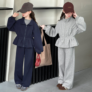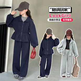 宽松卫衣外套气质长裤 女童休闲运动套装 时尚 新款 两件套 2025春秋装