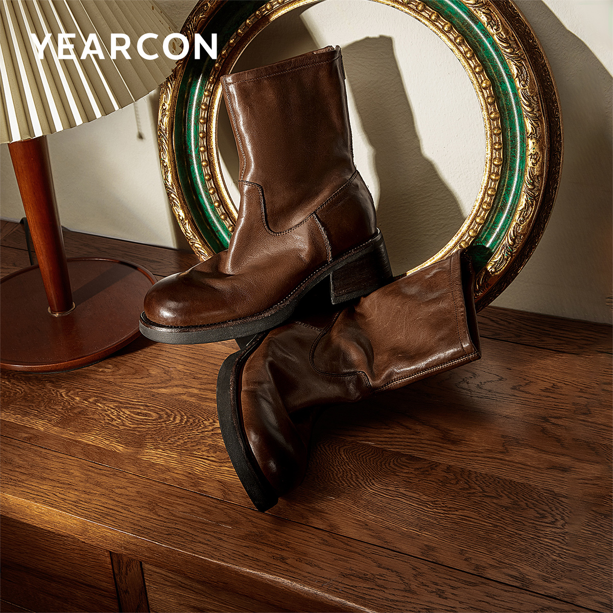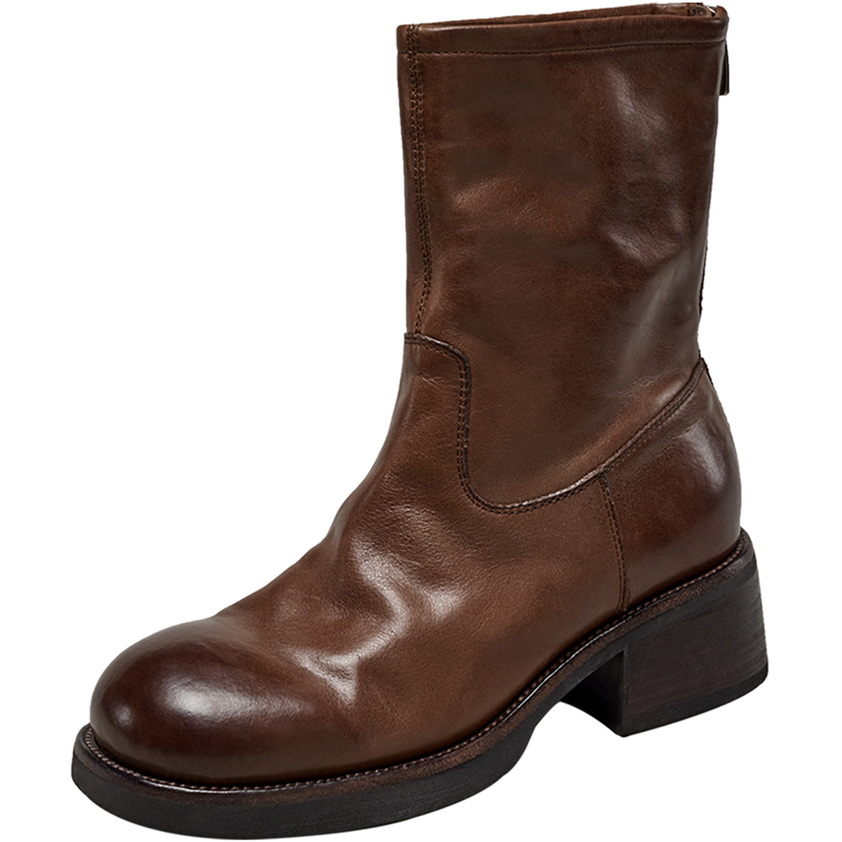 意尔康女鞋 秋冬女士高端真皮中筒靴复古休闲堆堆靴粗跟单靴瘦瘦靴