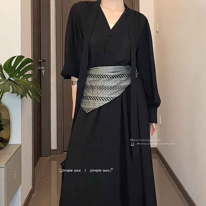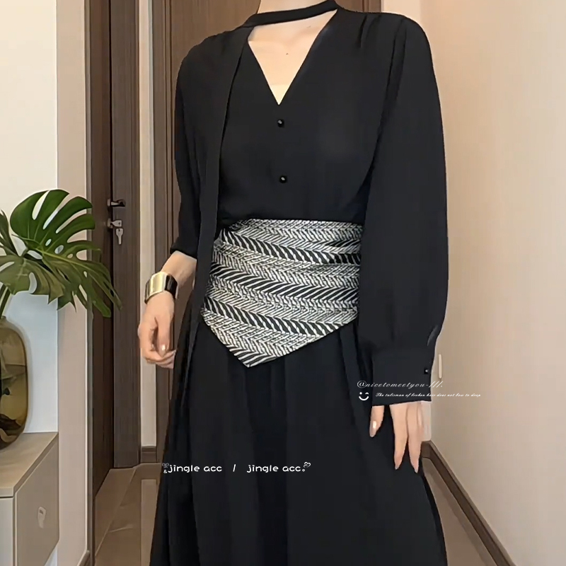 连衣裙细腰带配饰女皮绳腰链配裙子毛衣大衣高级感黑色百搭小皮带