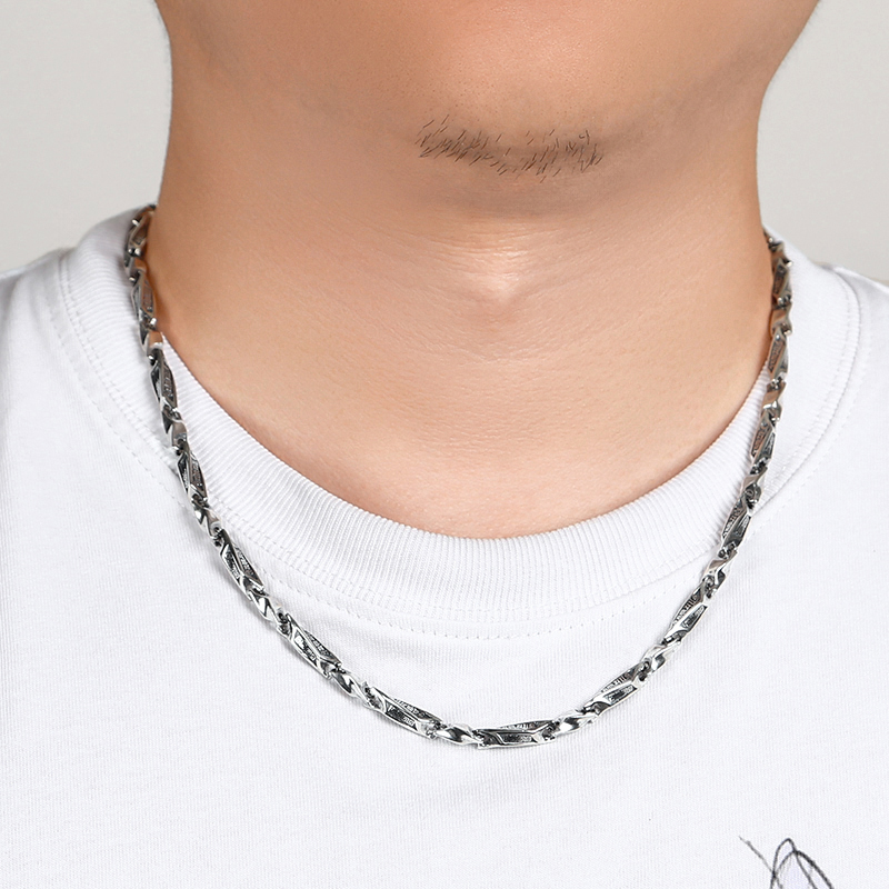 富贵鹿925纯银新款 实心竹节六字真言复古项链简约锁骨链七夕首饰