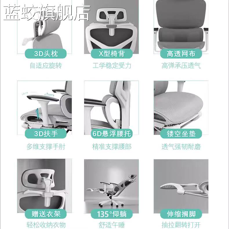 椅子男生可躺办公室座 椅家用舒适久坐电竞 椅摆件饰品 椅子护腰电脑 蓝蛟人体工学