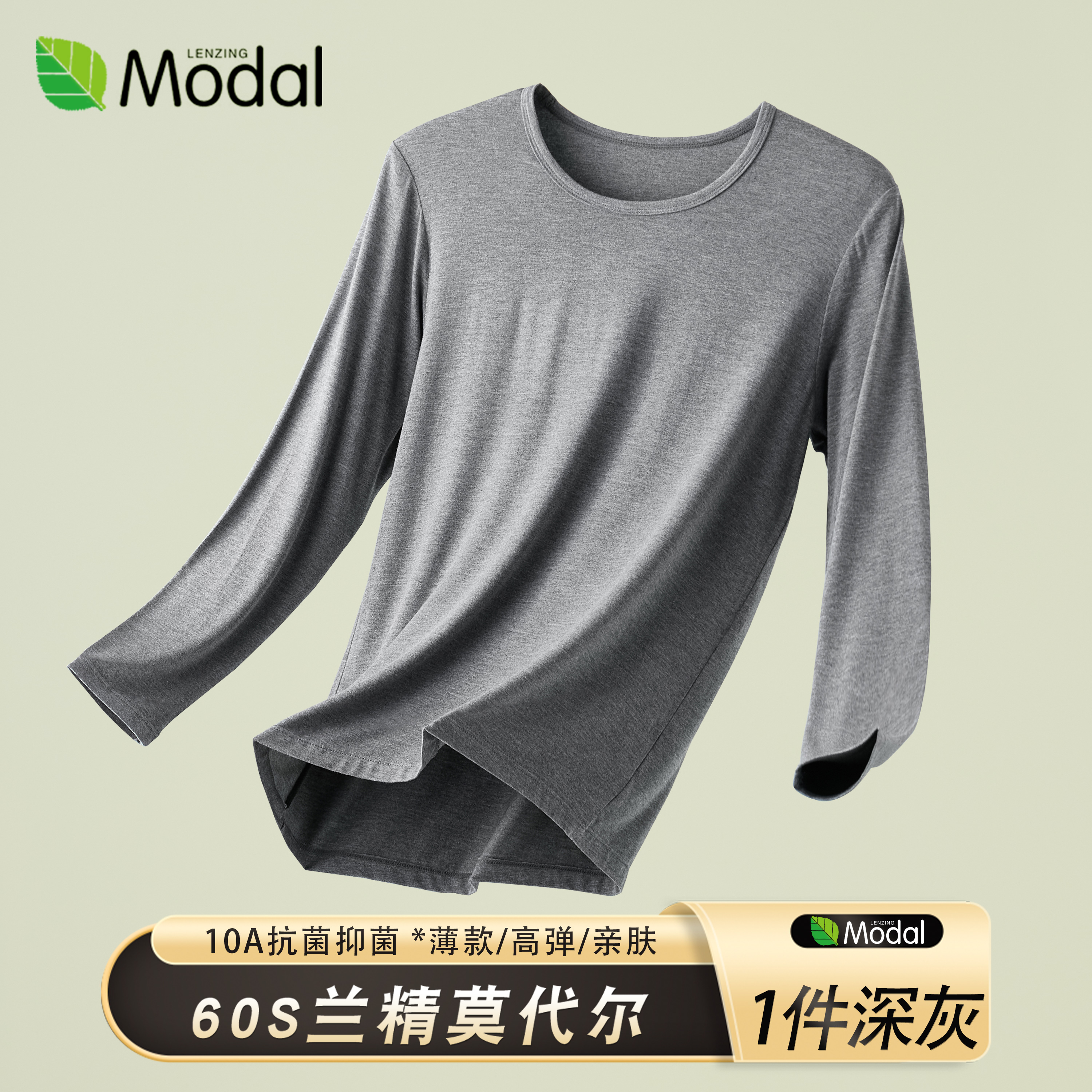 单件上衣春秋薄款 新款 大码 打底衫 保暖内衣长袖 抗菌莫代尔秋衣男士