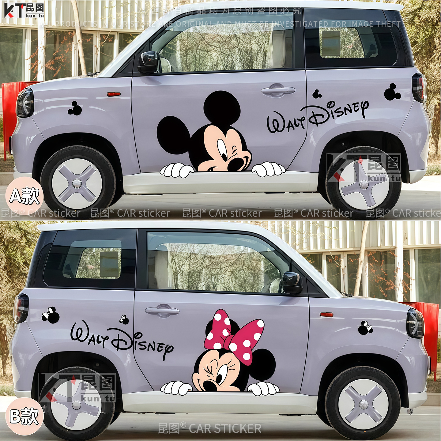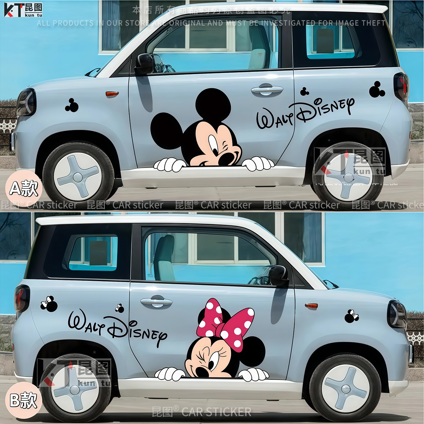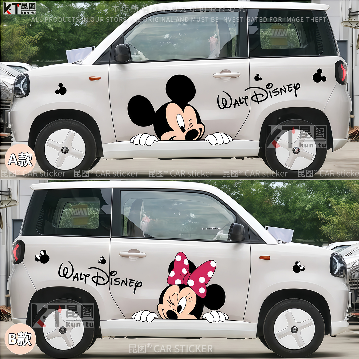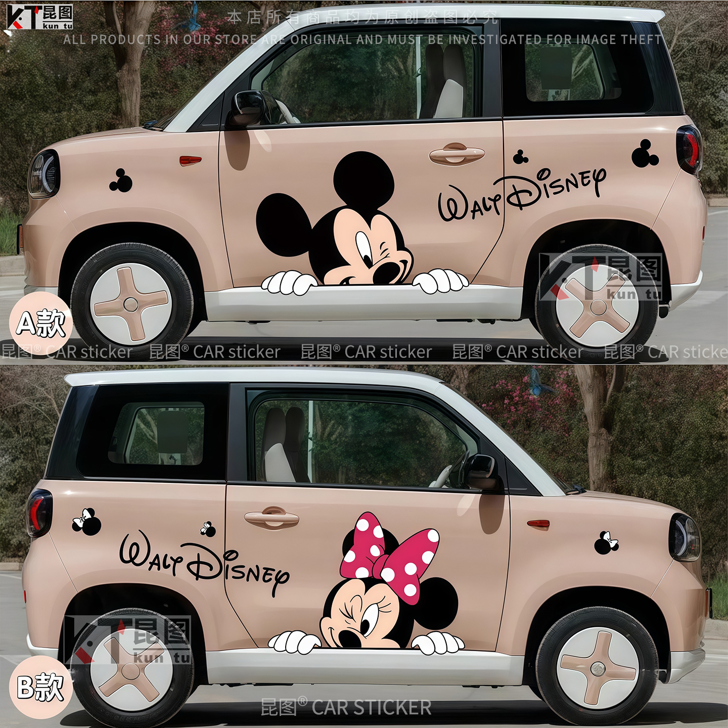 新知豆彩虹汽车贴纸卡通可爱米奇米妮新能源车身两侧拉花装 饰防水