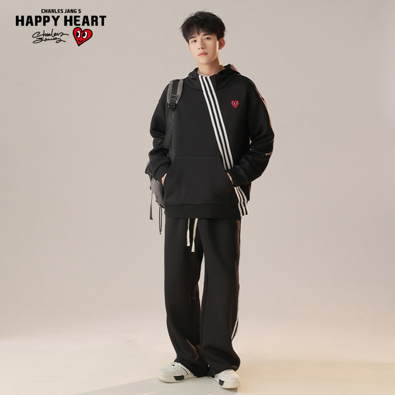 休闲加绒保暖外套卫衣卫裤 特步运动套装 新款 秋季 运动服两件套 男款