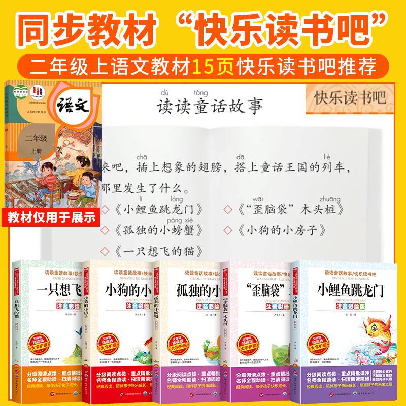 推荐 快乐读书吧二年级上册必读课外阅读书籍彩图注音版 小螃蟹歪脑袋木头桩人教版 猫小狗小房子孤独 全5册小鲤鱼跳龙门一只想飞