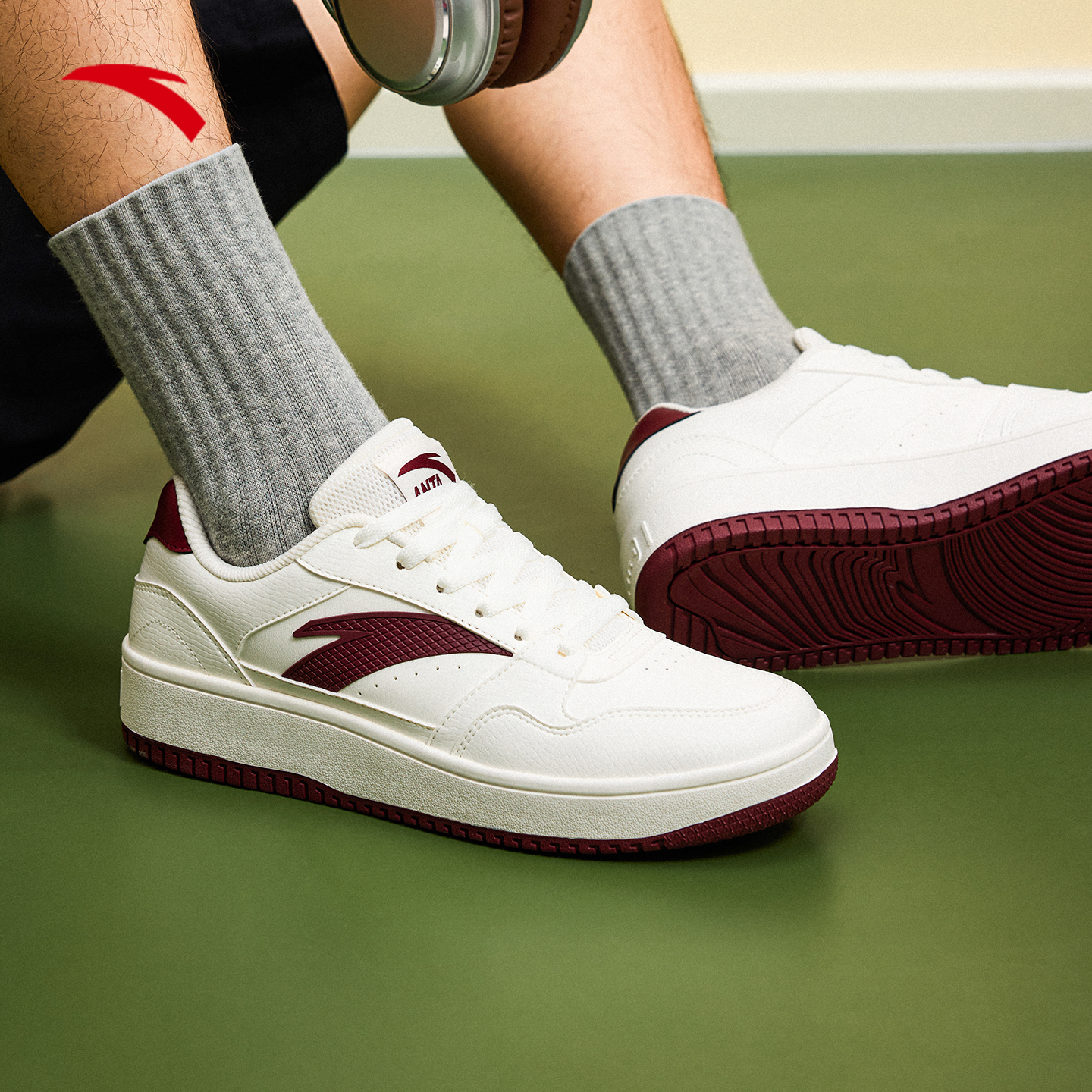 板鞋 男鞋 革面休闲鞋 多巴胺色系透气男士 特步海浪鞋 运动鞋 秋冬新款