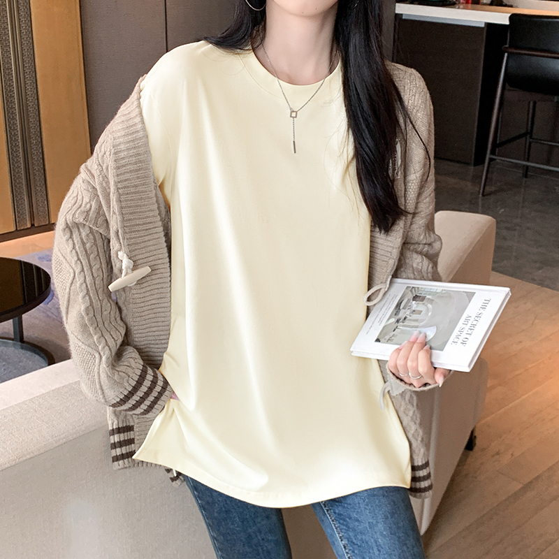 100%纯棉上衣女士开衩内搭打底衫 2025新款 t恤女秋季 雪中飞长袖