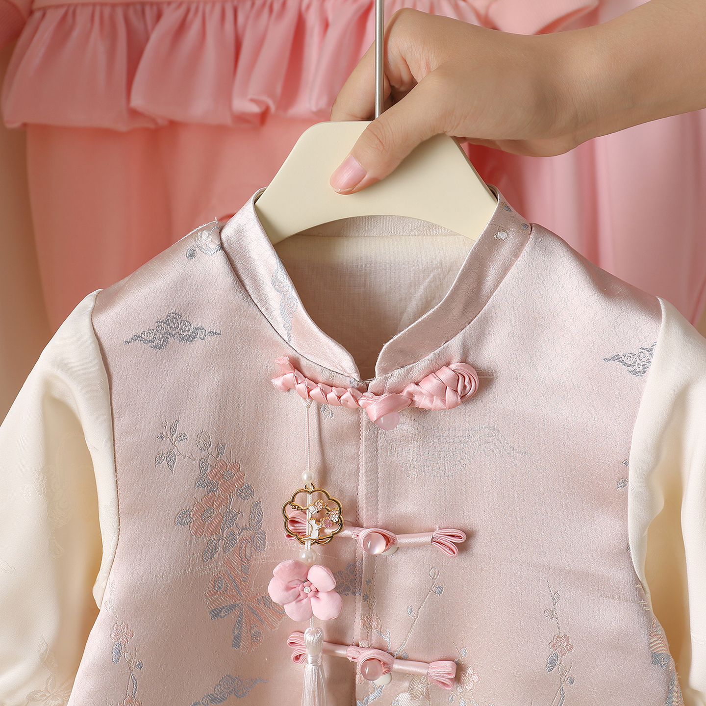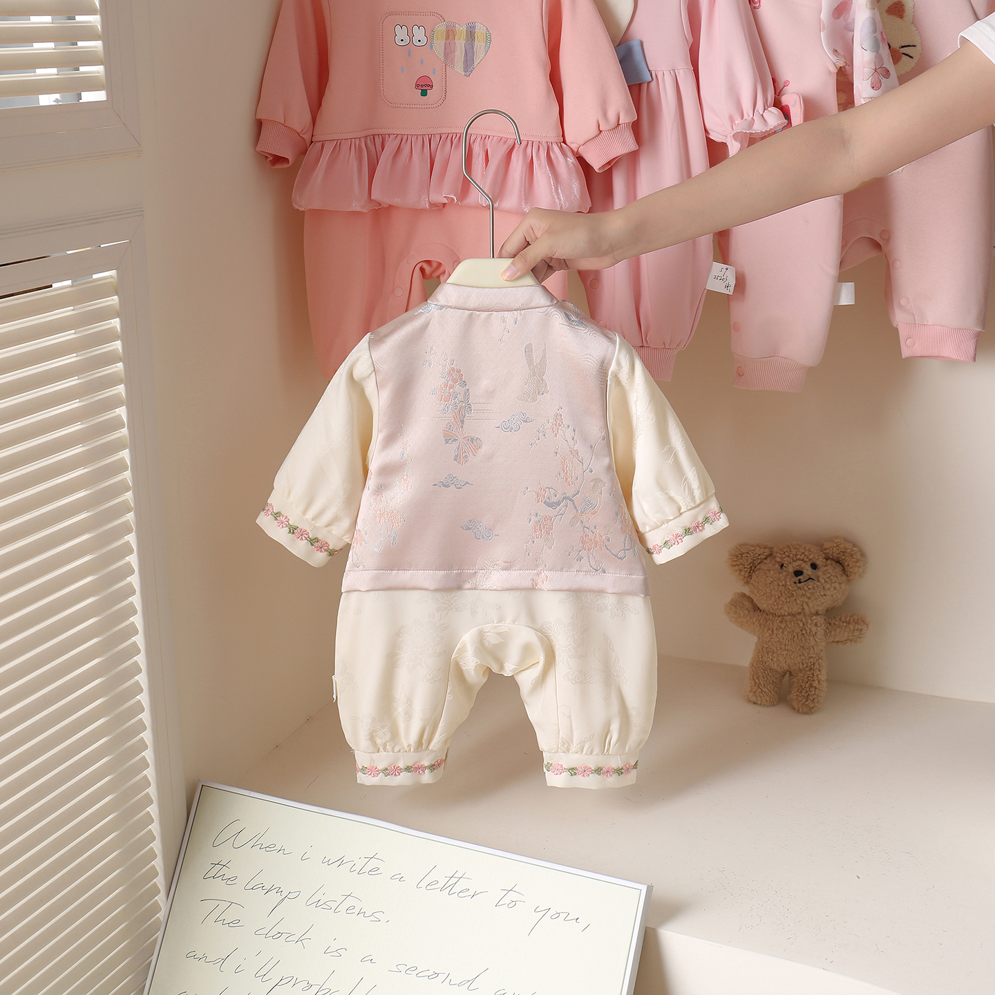 kmi新生女宝宝婴儿衣服国风连体衣满月百天中式 哈衣周岁礼服春秋
