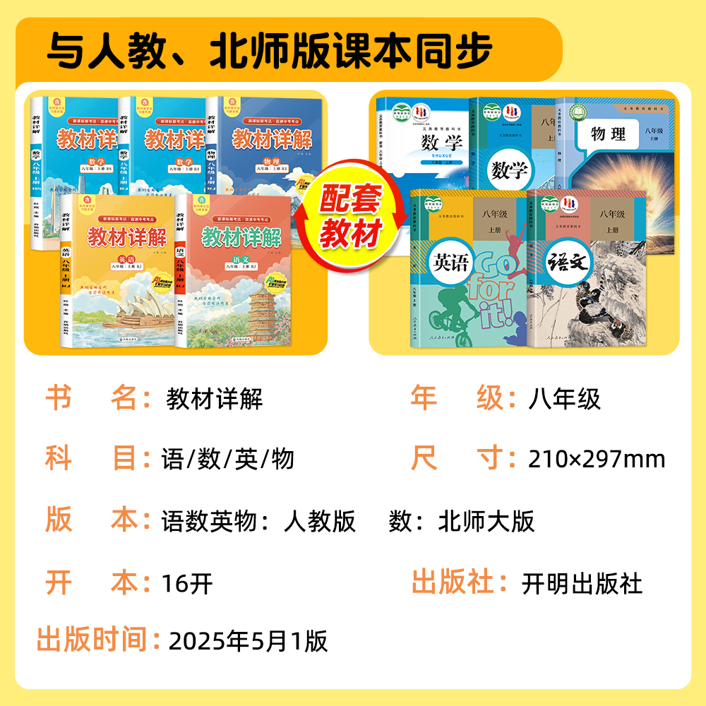 2025版 含AI助教八上初二预习教辅资料8上学霸课堂笔记 初中教材详解讲解全解八年级上册语文数学英语物理教材书全套课本同步人教版