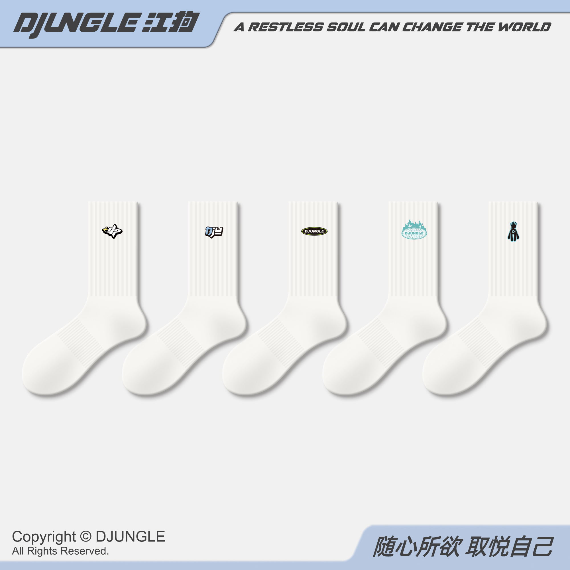 江狗情侣袜子男女2025新款 春秋中筒袜运动抗菌吸汗简约白色长袜棉