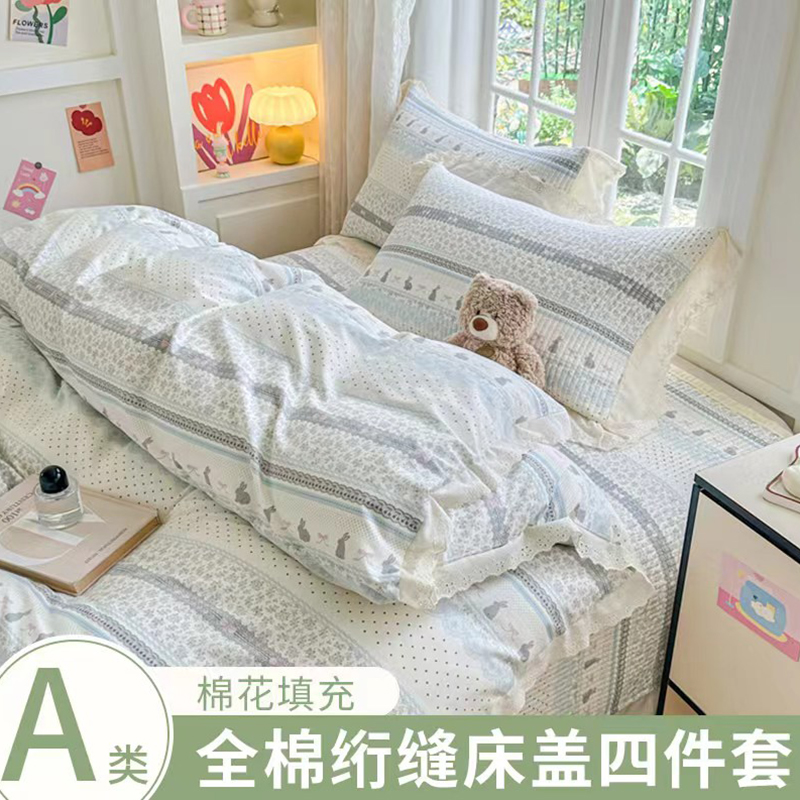 2025新款 床单被套三四件套 里外全棉绗缝棉花床盖单件纯棉花边款