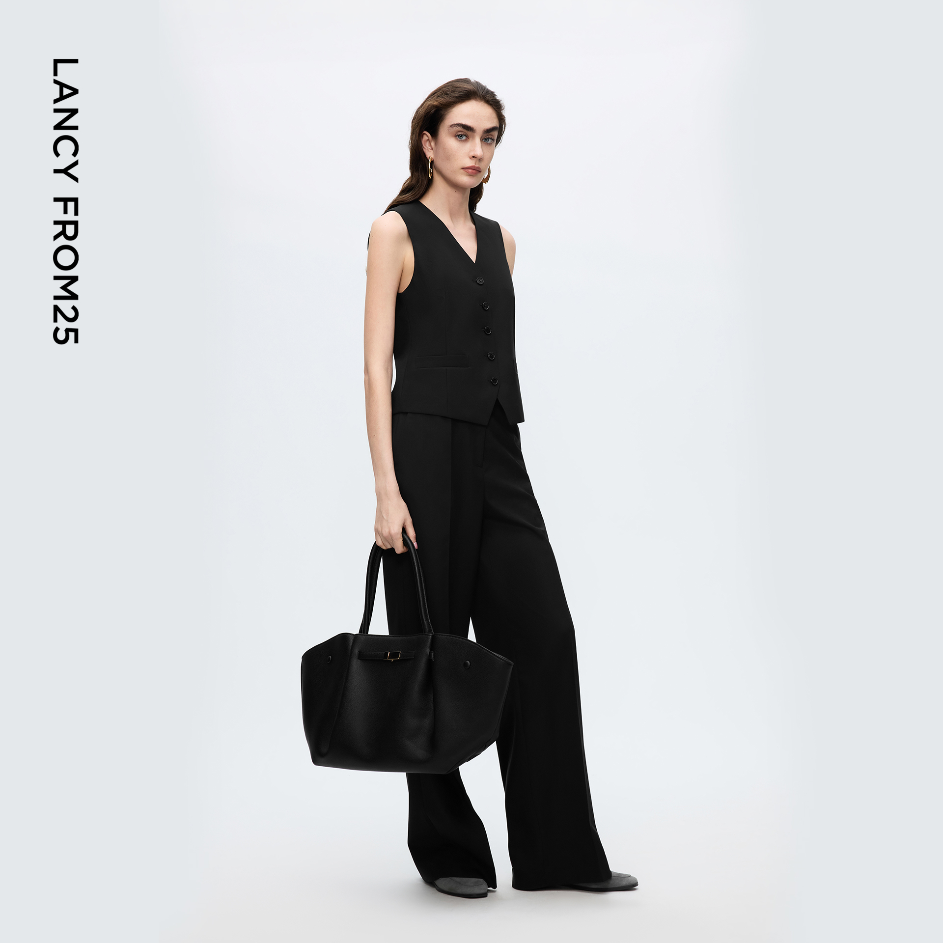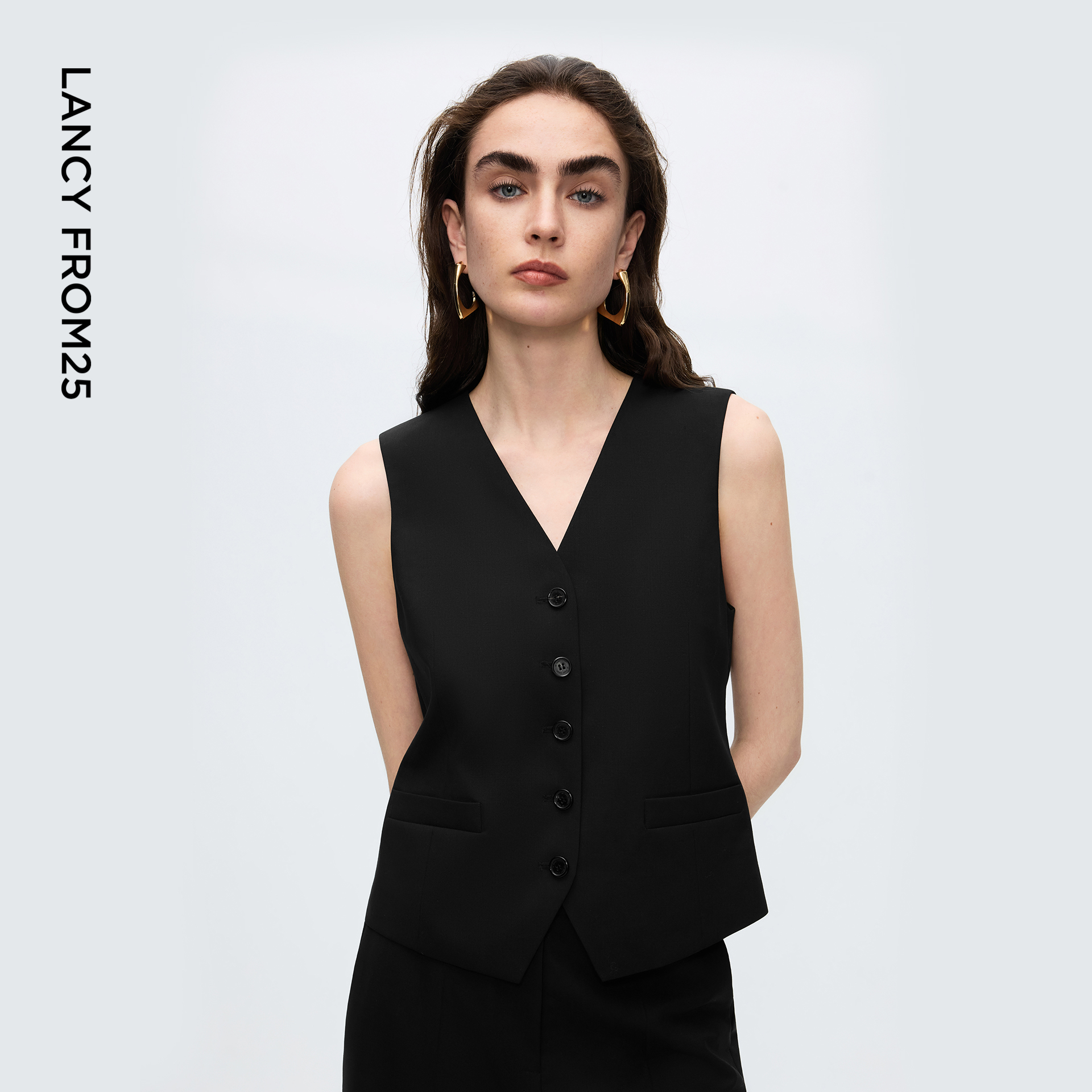 新款 背心马甲女高级优雅2025年冬季 收腰上衣西装 朗姿黑色V领无袖