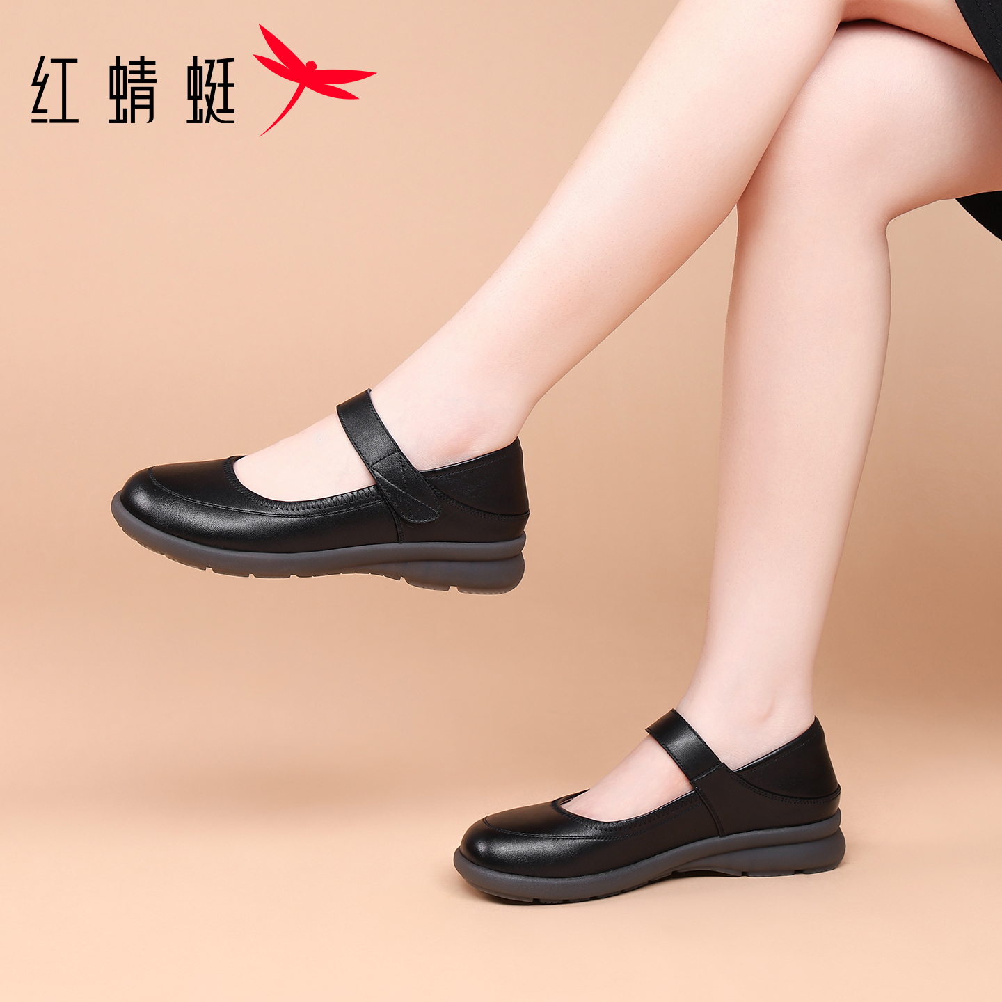 鞋 新款 子女士休闲皮鞋 女款 妈妈奶妈真皮 红蜻蜓女鞋 玛丽珍单鞋 秋季