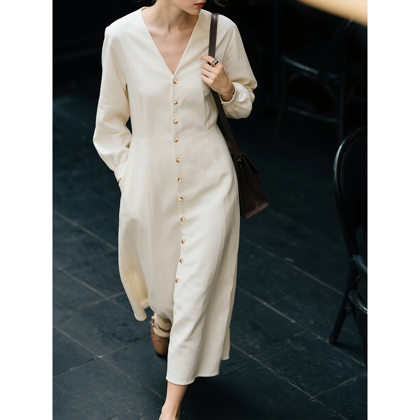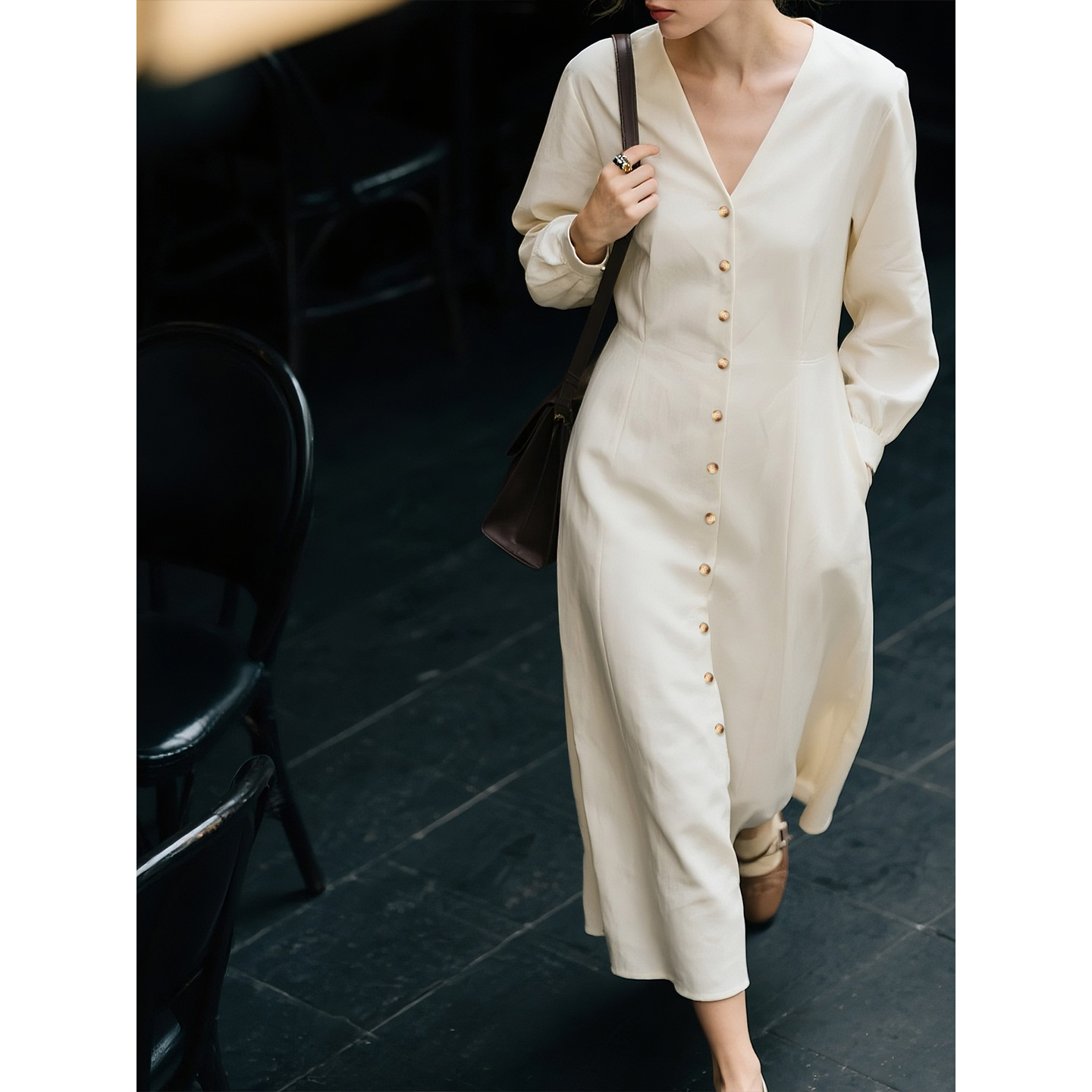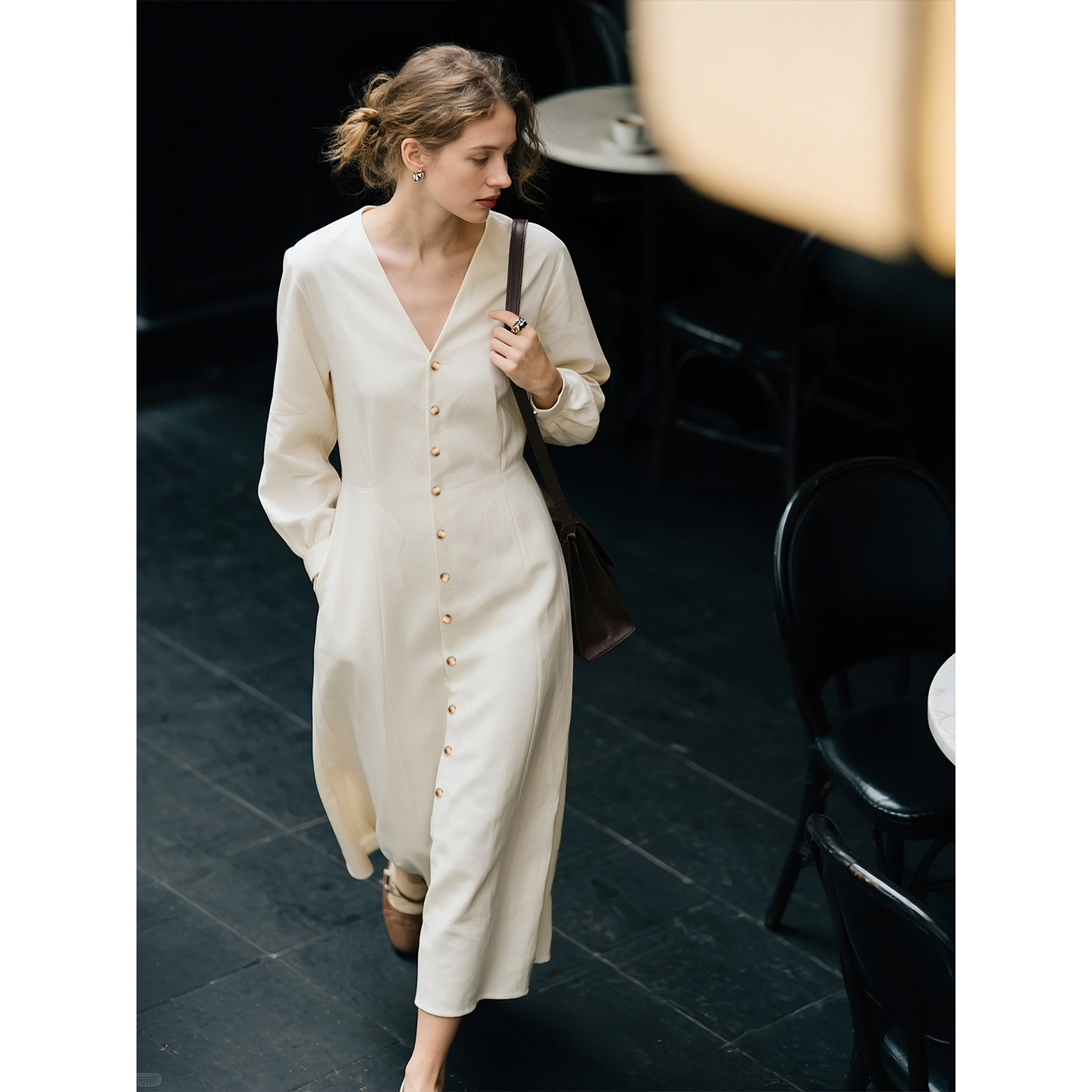 宽松显瘦裙子 小个子钉珠长袖 茗思高级感撞色连衣裙女2025秋季 新款