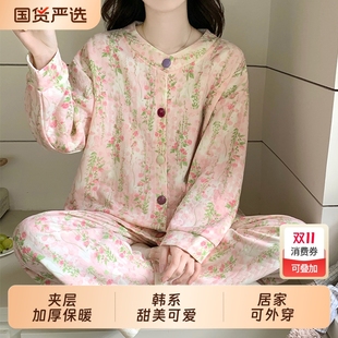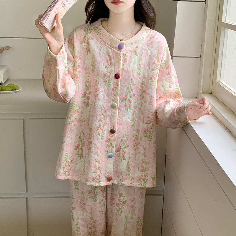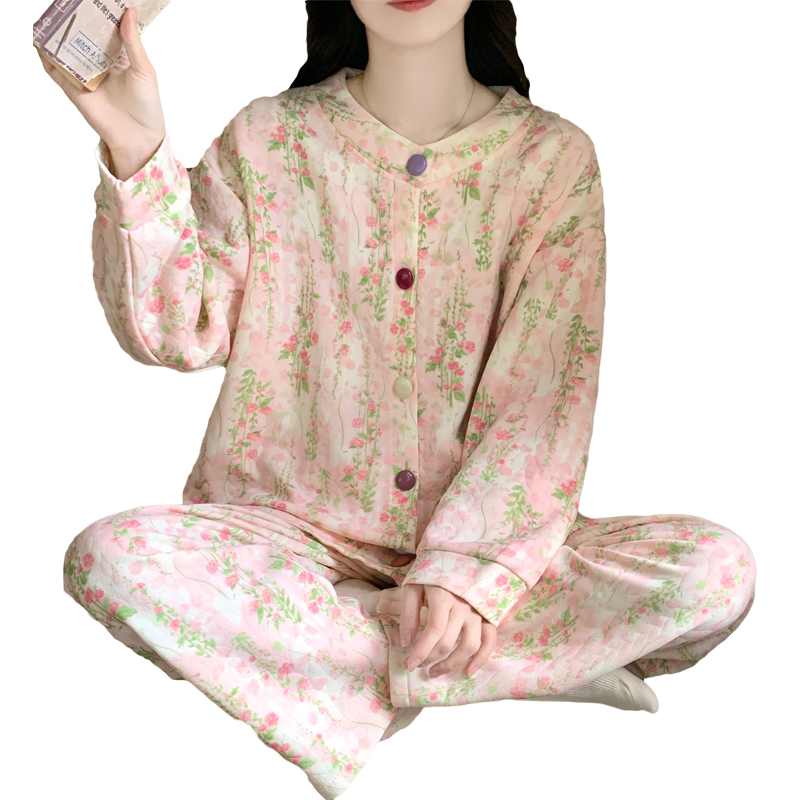 夹层棉加厚甜美碎花家居服套装 2025新款 秋冬季 睡衣女款 空气棉长袖