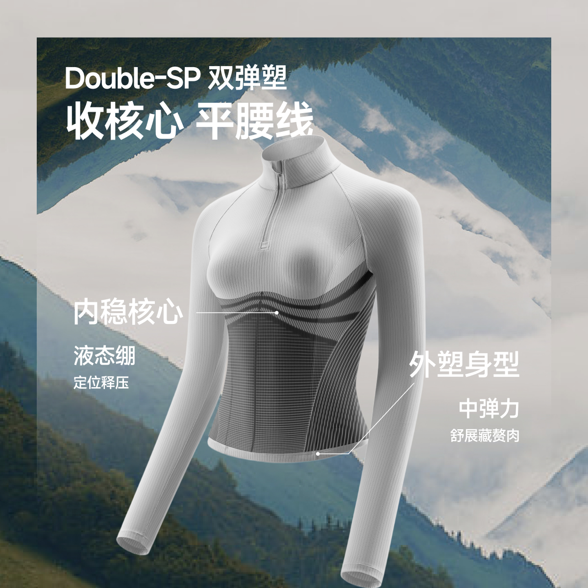 蕉下速干运动塑身衣女半拉链t恤修身 上衣 塑形运动跑步健身服长袖