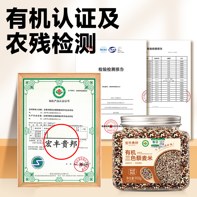 宏丰贵邦东北有机三色藜麦米900g 1罐粗粮饭五谷杂粮新货健身代餐