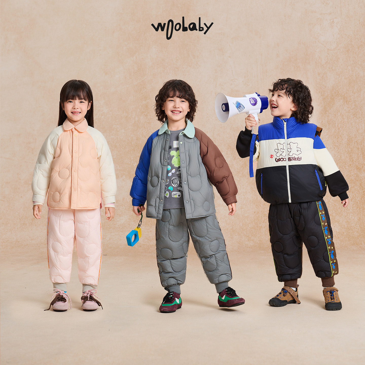 预售免定 25冬季 90白鸭绒 束脚裤 长裤 woobaby儿童拼接撞色羽绒裤