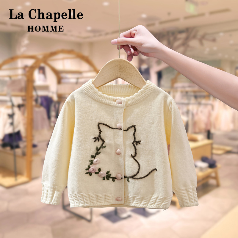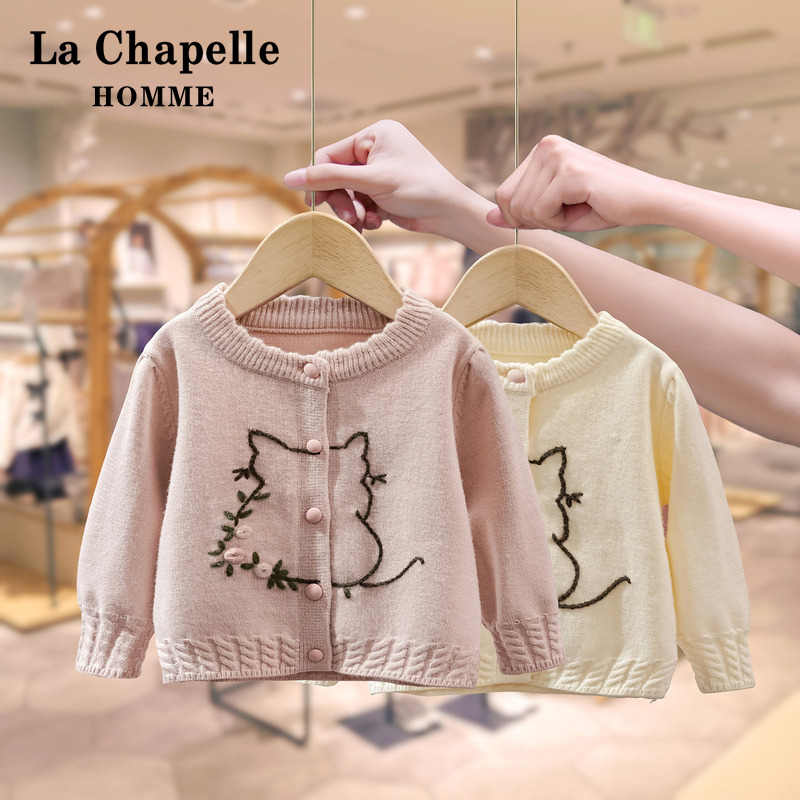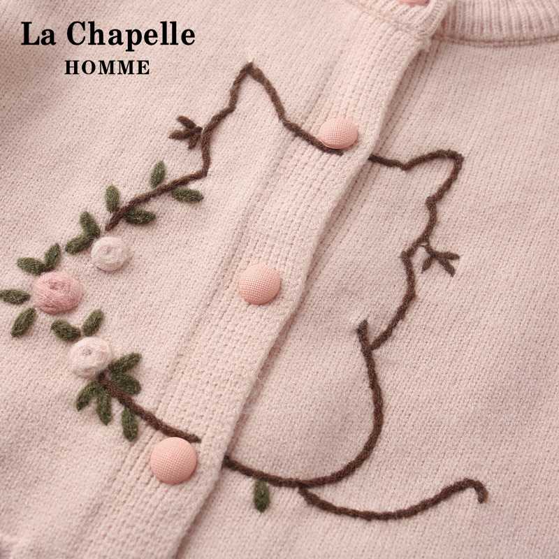 草莓刺绣宽松毛衣外套 新款 紫涵100%绵羊毛圆领针织开衫 女2025秋季