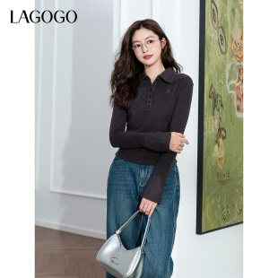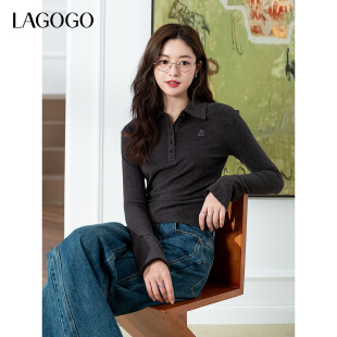 舒适气质通勤上衣 新款 LAGOGO灰色显瘦打底衫 T恤女拉谷谷2025秋季