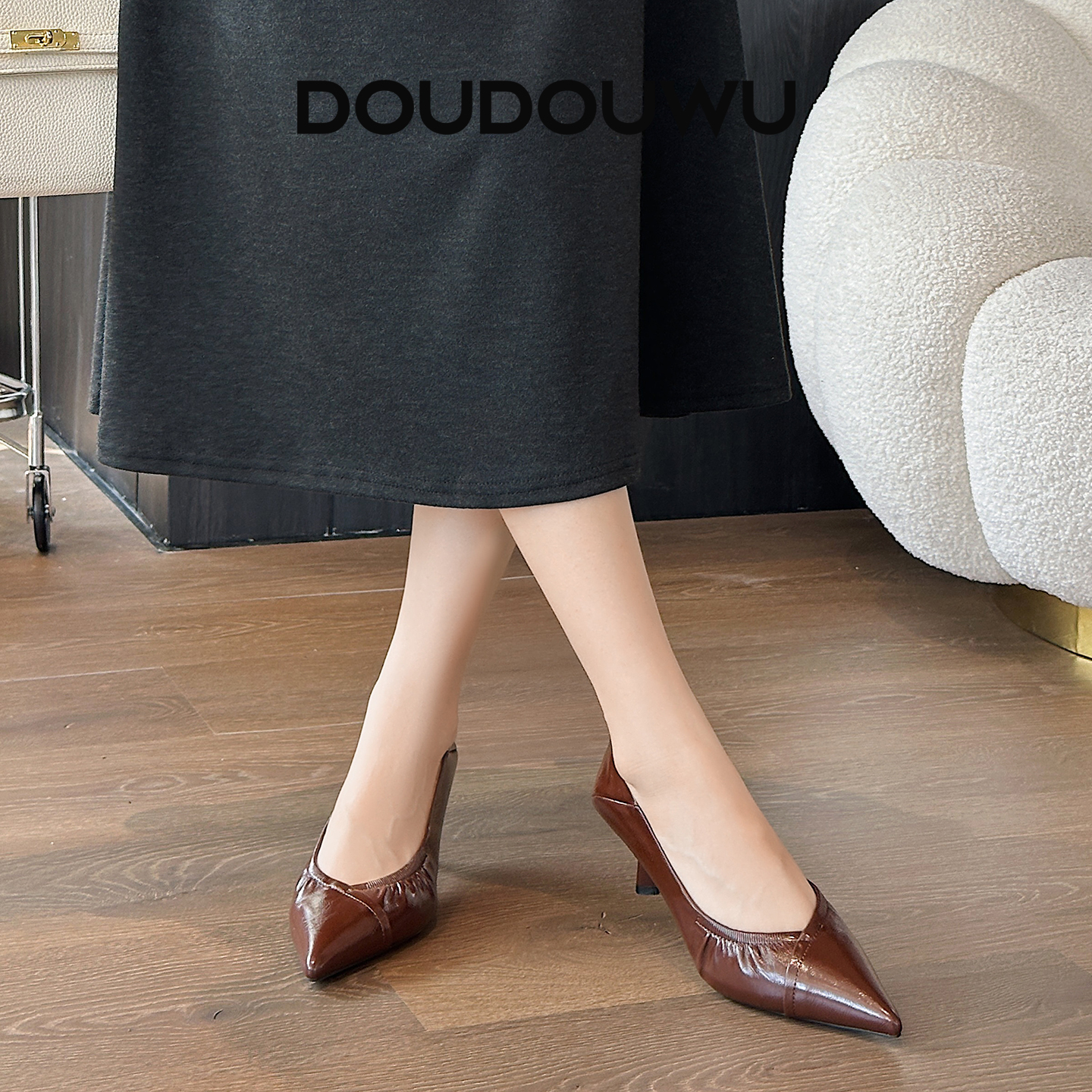 宽楦羊皮尖头细跟通勤浅口单鞋 大码 黑松露 秋冬女鞋 7or9黑色高跟鞋