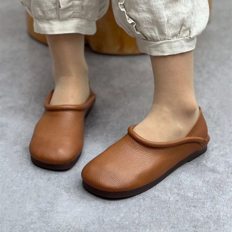 复古浅口单鞋 BeauToday真皮乐福鞋 英伦风黑色小皮鞋 2025新款 女款