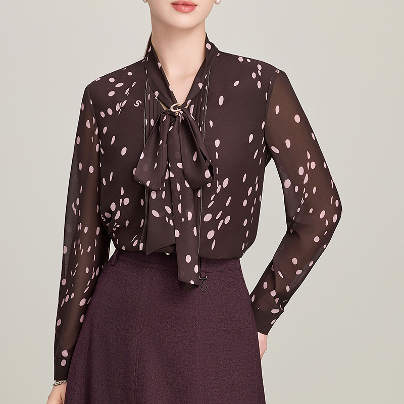 上衣 女高级感轻奢超火减龄洋气小衫 赢智尚飘带领雪纺衬衫 2025新款