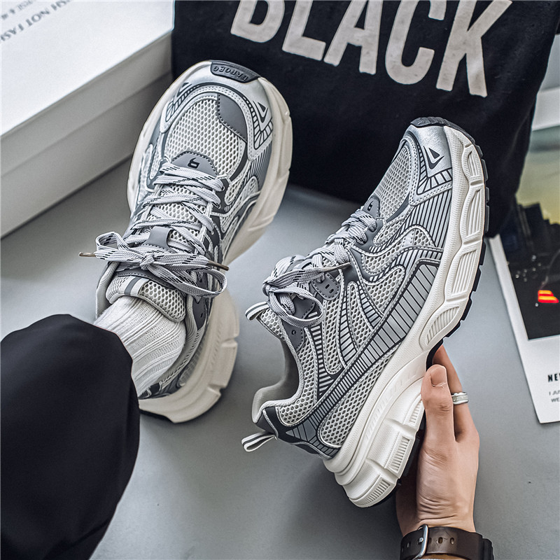 港风潮牌老爹潮鞋 透气网面百搭运动跑步休闲厚底防滑男士 秋季 男鞋