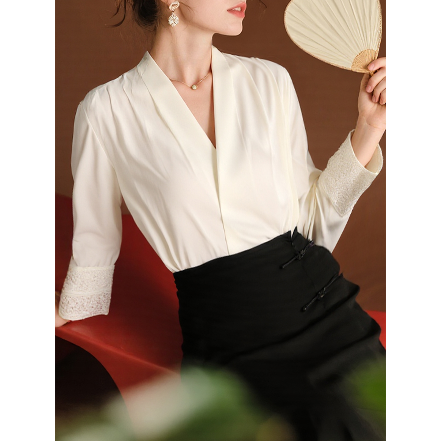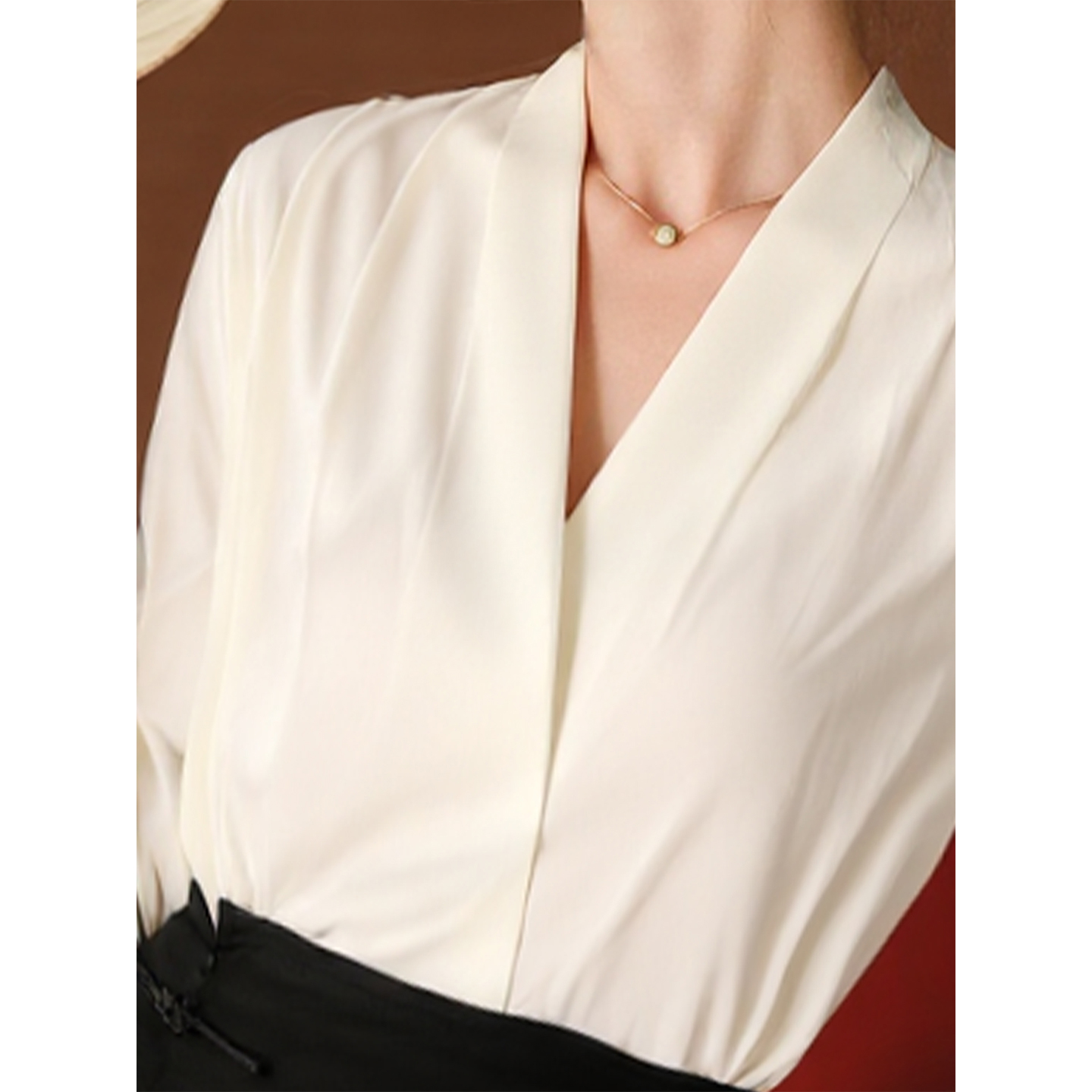 法式 白色V领长袖 新款 女2025年秋季 气质优雅减龄百搭衬衣上衣 衬衫