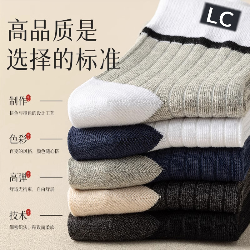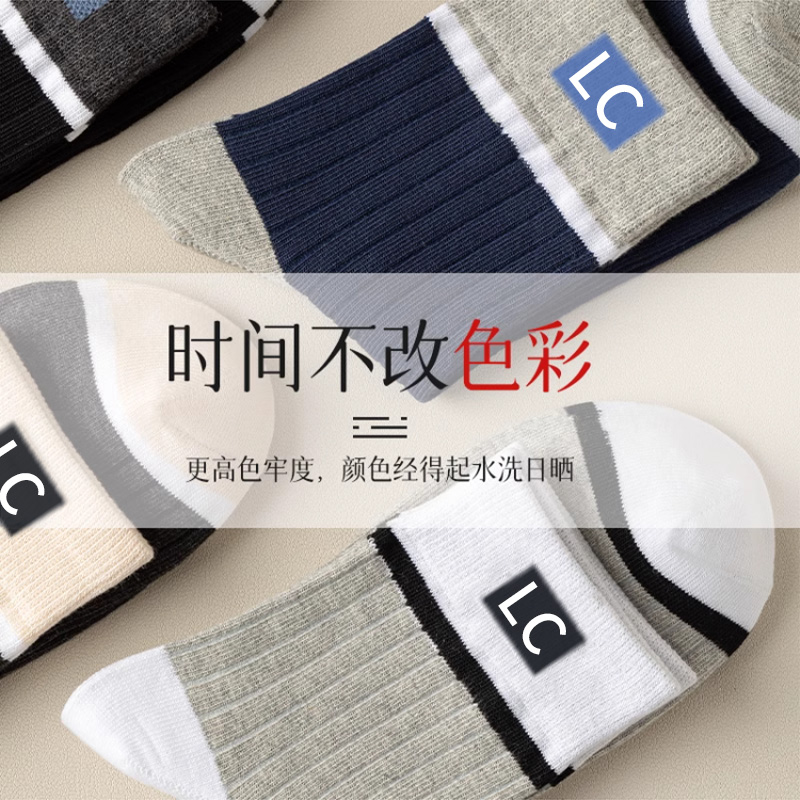 3双装 中筒袜简约运动防臭袜子男 起多规格 男士 四季
