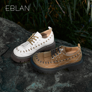 2025秋新款 布洛克中粗跟皮鞋 HL257112 系带牛津鞋 哈森漆皮德比鞋